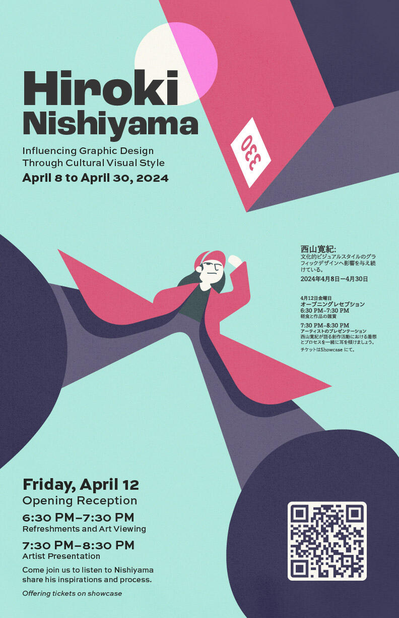 This project pressed me with the challenge of taking inspiration from an existing style—that of Hiroki Nishiyama's—for an event poster. This project let me express the style and feel of Nishiyama's artwork through hierarchy of type, limited selections in color, and key placements of subjects.