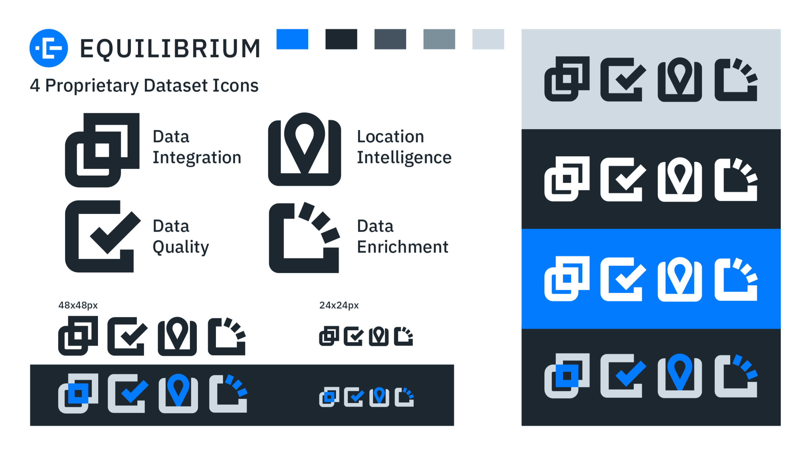 Equilibrium is a sleek and solid data branch, it was vital that the icons reflected this identity and were able to be scaled and visible at smaller sizes. This project challenged me in organizing promotional material and organizing datasets for visual consumption.