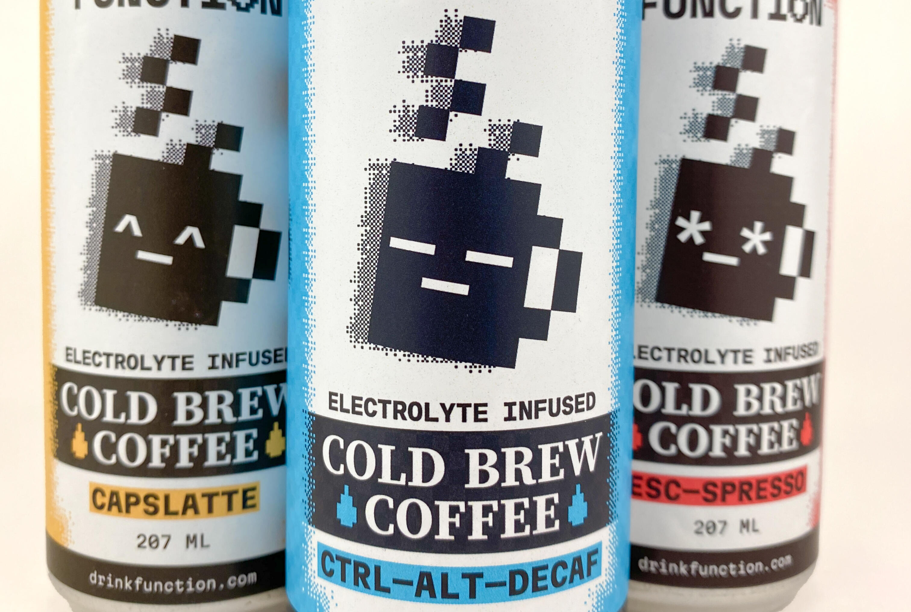 FUNCTION is a tech-inspired, gamified cold-brew coffee drink. Their new package design is intentionally designed to break the mould of other energy and/or gaming-inspired drinks seen on market shelves.Most tech-inspired caffeinated drinks approached their packaging style with an electric, yet overwhelming energy—designs that depicted the drinks as more hyper than productive.